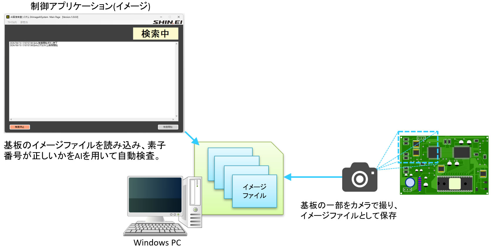 ・基板のイメージファイルを読み取り、素子番号が正しいかをAIを用いて自動検査(※)