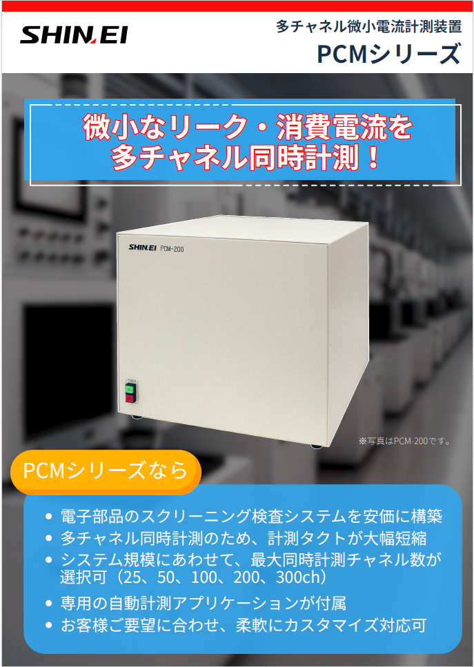 PCMシリーズは、微小なリーク電流・消費電流を多チャネルで同時計測できる多チャネル微小電流計測装置です。