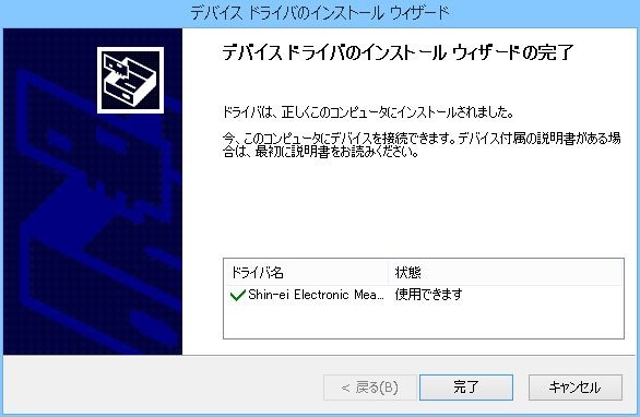 9) デバイスドライバーが正常にインストールされたことを確認し、[完了]をクリックします。