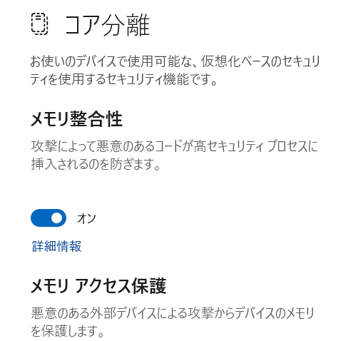 Windows 10およびWindows 11では、セキュリティ向上のために「コア分離・メモリ整合性」という新機能が追加されました。